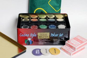 Покерный набор Holdem Light на 200 фишек без номинала идеально подходит для начинающих игроков. Набор для игры в покер содержит всё необходимое для качественно проведённых партий. 200 фишек без номинала, фишка дилера, сукно и карты, которые так приятно держать в руках, сложены аккуратно в жестяную банку с крышкой, поэтому брать куда-либо покерный набор не составляет труда. Минимальная сумма заказа 500 руб.