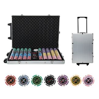 Покерный набор Ultimate на 1000 фишек – это выбор человека с отменным вкусом! Вы также можете преподнести данный набор для игры в покер в качестве подарка, и быть уверенными, что Ваш презент оценят по достоинству. В стальном кейсе с ключами находится всё необходимое для качественно проведённой партии: фишка дилера, 1000 красивых фишек различных номиналов, 3 колоды 100% пластиковых карт и 5 игральных костей. Такой набор для покера очень выгоден, ведь современный кейс оснащён колёсиками и удобной ручкой. Благодаря такой системе Вы всегда сможете покерный набор брать с собой. Минимальная сумма заказа 500 руб.