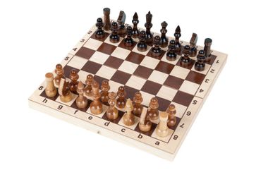 Древняя игра в шахматы имеет множество поклонников во всех странах мира. Суть игры проистекает от названия и переводится дословно как «Смерть королю». Хотя шахматы считаются парной игрой, в нее могут играть также группы игроков – так называемая консультационная игра. В комплект входят игральная доска и два комплекта шахматных фигур, по 16 штук в каждом. Высота фигур не превышает 7.3 см. Если вы любите шахматы и часто играете в эту удивительную игру, купите Шахматы «Кировские» малые из натурального дерева – это будет хороший выбор. Набор имеет небольшой вес (около 600 грамм), поэтому его будет удобно брать с собой на дачу, на природу или в гости к другу. Очень полезно обучать игре в шахматы детей – ведь это отличная тренировка логики, внимания, тактики. Минимальная сумма заказа 500 руб.