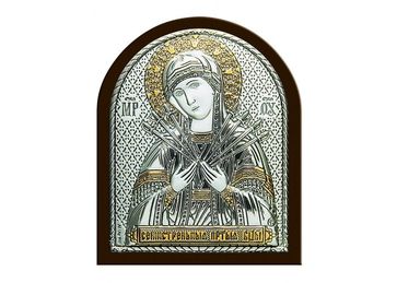 Икона образ Богородицы "Семистрельная" (серебро 960*) в раме классика