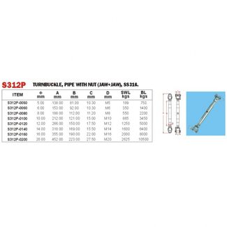 Vinox Талреп из нержавеющей стали вилка вилка Vinox S312P-0100 212 мм 3450 кг