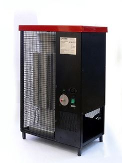Теплогенератор на отработанном масле Тепламос НТ-612 оснащен возможностью работы даже от аккумулятора. Такой нагреватель воздуха можно назвать печью для обогрева помещений складского, производственного, транспортного или административного назначения. В этом отопителе нет вентилятора, обогрев помещения производится естественной циркуляцией воздуха. Плюсы и преимущества от покупки и эксплуатации такого нагревателя воздуха на отработке Тепламос НТ-612 очевидны всем, кто хоть раз имел дело с теплогенераторами на отработке. Это: доступность энергоносителя – отработанное масло или топливо есть практически на любом предприятии, гараже, складе и т.д., также отметим простоту эксплуатации, безопасность и возможность круглогодичного применения. Особенности и преимущества печи на отработанном масле: Компактные размеры, Возможность работы от аккумулятора, При установке требуется только монтаж дымохода, Наличие автоматической защиты от перелива топлива и от перегрева, Отсутствие запах и дыма при сгорании топлива, Топливный бак рассчитан на несколько часов беспрерывной работы, Точная регулировка мощности, Отсутствие потребности в дополнительном подогреве и фильтрации топлива, Простота в чистке и обслуживании, например, после 12 часов работы в повышенном режиме, Вам нужно всего лишь почистить тарелку камеры сгорания от продуктов сгорания топлива. Характеристики Габариты Ширина (см):41.0 Высота (см):61.0 Глубина (см):26.0 Конфигурация Источник энергии тепловых пушек: отработанное масло Установка: напольная Рабочие характеристики Для помещений, м²: 50–150 Мощность кВт: 5–15 220 / 380V: 220 Вес, кг: 15.5 Потребляемая мощность кВт.: 0.01 Встроенный топливный бак: + Температура на выходе, °С: 70-100 Объем топливного бака: 8 л Диаметр дымохода, см: 10 Расход топлива, л/ч: 0.5 ― 1.5<b