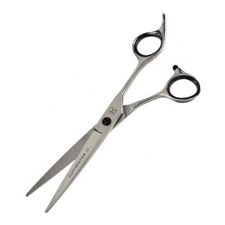 Ножницы эргономичной формы Нержавеющая сталь высокой твёрдости Полированная поверхность Классическая заточка режущих полотен (для всех техник стрижки) Винтовая группа с системой mini-click Стопор-амортизатор со встроенным металлическим винтом Упор для мизинца