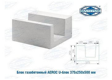 - Газобетон Аэрок | Aeroc U-блок 375х250х500мм 36шт поддон по выгодной цене 383 р. руб.;