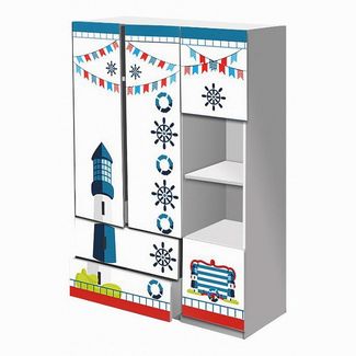 Бренд - Кровати-машины (Россия), Серия - Отважный моряк, Ширина, мм - 1250, Высота, мм - 1800, Выступ, мм - 500, Компоненты, входящие в комплект - стеллаж комбинированный:2 дверцы, 3 полки;шкаф платяной:1 штанга для вешалок, 2 дверцы, 2 ящика, 3 полки, Стиль - модерн, Размеры, мм - 1250х500х1800, Материал фасада - ЛДСП Е1, Материал корпуса - ЛДСП Е1, Страна производителя - Россия, Объем упаковки, куб. м - 0.25, Цвет фасада - белый с цветным рисунком, Цвет корпуса - белый, Гарантия, месяцы - 18 Работаем круглосуточно!Возврат 21 день. Страна производства: Россия Есть доставка.