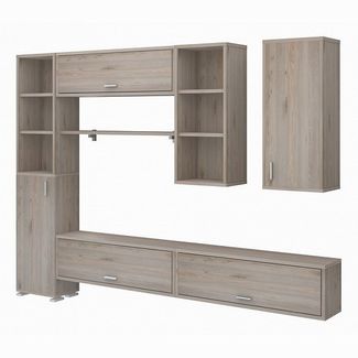 Интересная композиция мебели для обустройства современной гостиной.Нижние полки отлично подходят для размещения телевизора, акустической системы и другой электроники.Слева находятся закрытие стеллажи для книг, посуды и других мелких вещей.Верхняя часть гостиной занята открытыми стеллажами, одной закрытой полкой и одной навесной.Отдельный закрытый стеллаж благодаря использованию контрастных цветов дополняет композицию. Работаем круглосуточно!Возврат 21 день. Страна производства: Россия Есть доставка.