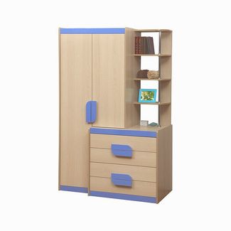 Гардеробная часть комбинированного шкафа с распашными дверцами разной высоты оборудована вешалкой и двумя полками. Она предназначена для хранения верхней одежды, обуви, головных уборов и других вещей повседневного пользования.В ящиках комода удобно держать изделия из текстиля и мелкие предметы.Этот комбинированный шкаф станет идеальным решением для детских комнат небольшой площади.Строгость его дизайна подчёркивают цветные элементы фасада: ручки, нижние и верхние планки. Работаем круглосуточно!Возврат 21 день. Страна производства: Россия Есть доставка.