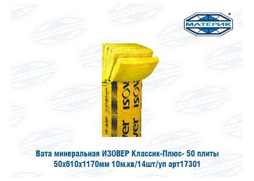- Вата минеральная Изовер | Isover Классик-Плюс- 50 50х610х1170мм 10м.кв 14шт уп в каталоге Изоляторы и изоляционные материалы в России;