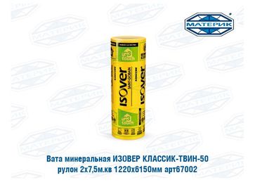 - Вата минеральная Изовер КЛАССИК-ТВИН-50 рулон 2х7,5м.кв 1220х6150мм в каталоге Изоляторы и изоляционные материалы в России;