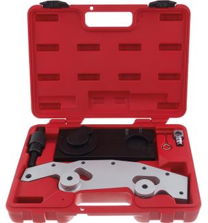 Состав: Регулировочная пластина для установки фаз газораспределения Фиксатор шестерен вторичной цепи Имитатор гидравлического натяжителя первичной цепи Фиксатор натяжителя вторичной цепи Адаптер для сжатого воздуха