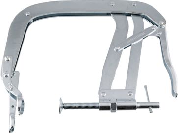 KA-5054 Рассухариватель клапанов. Предназначен для сжатия пружин впускных и выпускных клапанов. Особенности: Выполнен в форме струбцины. Используется при снятой головке блока цилиндров. Регулировка рабочего хода с помощью резьбового вала в зависимости от длины клапана. Фиксация струбцины в необходимом положении позволяет освободить руки для удобства демонтажа стопорных сухарей клапана. Подходит для использования в большинстве отечественных и зарубежных двигателях. Рабочий диапазон: 70 – 150 мм