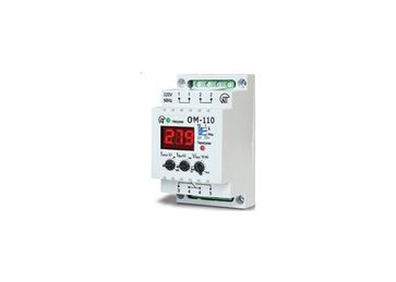 - реле ограничения потребляемой мощности. ОМ-110 позволяет контролировать значение мощности и состояние нагрузки с помощью светодиодных индикаторов, расположенных на лицевой панели. Питание ОМ-110 осуществляется от цепей измерения напряжения.