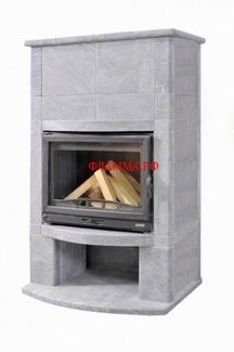 Облицовка из талькомагнезита толщиной 50 мм с дровницей.