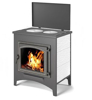 Печь-Камин ВЕЗУВИЙ ПК-04 (240) предназначена для бытового использования и рассчитана на установку в различных хозяйственных и жилых помещениях.Мощность печи-камина составляет 12 кВт и позволяет отопить помещение до 200 м3.Печь-камин ВЕЗУВИЙ ПК-04 (240) изготовлена из специальной конструкционной стали. Модель укомплектована чугунным колосником и чугунной герметичной дверцей Везувий 240, это выгодно отличает ВЕЗУВИЙ ПК-04 (240) от аналогов с металлическими дверками, которые подвержены деформации из-за высоких температур и перестают равномерно прилегать к топочному проему, тем самым нарушая герметичность печи, а наличие большого жаропрочного стекла позволяет контролировать процесс горения и любоваться «живым огнем».Топка печи-камина футерована легкозаменяемым, высококачественным шамотом, что защищает металл топки от воздействия высоких температур, продлевая тем самым срок службы печи, к тому же шамот отлично аккумулирует тепло, позволяя обогревать помещение в течении 2-х часов, после окончания топки печи.Наличие верхней чугунной плиты Везувий В3, с двумя конфорками, позволяет использовать печь-камин для приготовления пищи. Боковые стенки печи-камина ВЕЗУВИЙ ПК-04 (240) облицованы керамическими вставками, обеспечивающими естественную конвекцию воздушных потоков, что позволяет быстро прогреть воздух в отапливаемом помещении, к тому же, керамические вставки защищают окружающее пространство от воздействия «жесткого» инфракрасного излучения.После прогрева помещения до необходимой температуры, интенсивность процесса горения можно регулировать с помощью «зольника», прикрывая его для ослабления мощности горения, или приоткрывая, для усиления. Таким образом в данной модели печи-камина реализован режим «длительного горения», который составляет до 5 часов на одной закладке топлива. None