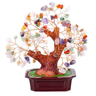 Небольшое искусственное деревце, выполненное в стиле японского бонсая – оригинальный предмет декора, который гармонично впишется в любой стиль интерьера и станет отличным подарком, благодаря необычному дизайну, главной особенностью которого являются ветви дерева с листвой из различных натуральных камней. Аметист, нефрит, сердолик, розовый кварц и т. д. – яркий фейерверк сияния кристаллов, каждый из которых обладает целым рядом лечебных и магических свойств. Аметист укрепляет отношения и устраняет бессонницу, розовый кварц дарит гармонию и избавляет от неврологических заболеваний, нефрит защищает от негативной энергии и улучшает работу почек. Этот бонсай – отличный подарок, несущий в себе лучшее, что можно пожелать близкому и родному человеку. None Есть доставка.