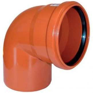 Отвод ПВХ 110 мм 90 градусов рыжий - это фасонная часть безнапорная, с раструбным присоединением, предназначенная для наружной канализации.