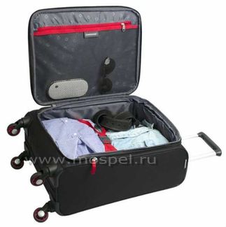 Легкий чемодан на колесах Wenger коллекция Arosa WGR6593201154внутри ремни-держатели для одеждыи большой карман сеточкателескопическая ручка с фиксаторомтканевые ручки для переноски4 колеса вращающихся на 360 градусовнаружный карман на молнии Дорожный чемодан малого размера в классическом швейцарском стиле Wenger WGR6593201154 черный с красным из прочного полиэстера 750x750D добби. None Возможен самовывоз. Есть доставка.