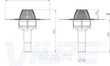 АМ - 75 водосточная воронка с битумным фланцем используется для систем внутреннего водостока на плоских и пологих битумных кровлях. АМ водосточные воронки устанавливаются рядами в лотках разуклонок. Рекомендуемые нормы установки: расстояние от гребня до лотка разуклонки 15 метров; расстояние между воронками 6 -6,5 метров.
