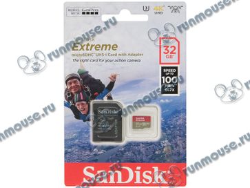Закажите Карта памяти 32ГБ SanDisk "Extreme SDSQXAF-032G-GN6AA" microSD HC UHS-I Class10 + адаптер [139751] у компании Runmouse в России на портале Alloy: