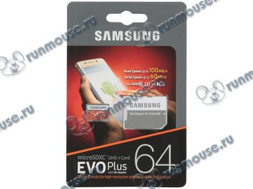 - Карта памяти 64ГБ Samsung "EVO Plus MB-MC64GA RU" microSD XC UHS-I Class10 + адаптер [139556] в каталоге Карты сменной памяти SD MMC Flash в России;