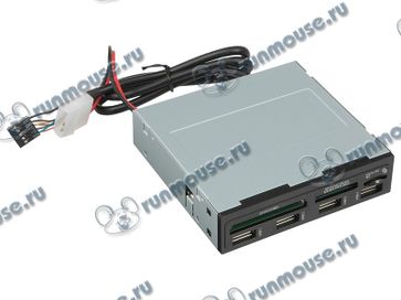 Картридер CF MD SDXC microSD MMC MS M2 Ginzzu "GR-137U", в 3.5" отсек, 4 доп. порта USB, черный (USB2.0) (ret) [117541]