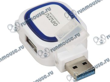 Картридер SDXC microSD MMC Ginzzu "GR-514UB", внешн., + доп. порт USB2.0 + доп. порт USB3.0, бело-синий (USB2.0) (ret) [139951]