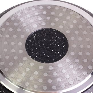 Кастрюля 24*11,5cm из литого алюминия с антипригарным покрытием "чёрный мрамор" и стекляной крышкой