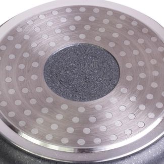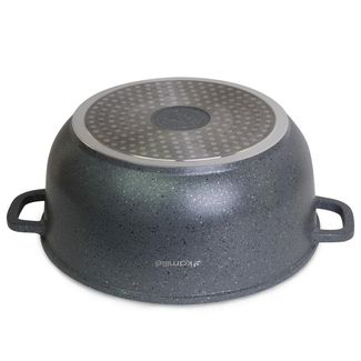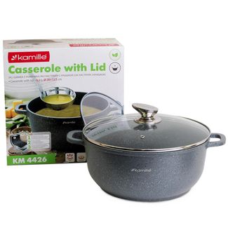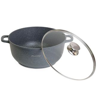 Кастрюля 28х12,5 см. из литого алюминия с антипригарным покрытием "гранит" и стеклянной крышкой Kamille