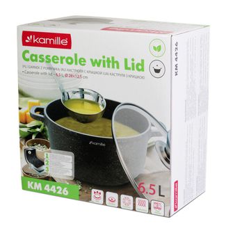 - Кастрюля 28х12,5 см. из литого алюминия с антипригарным покрытием "гранит" и стеклянной крышкой Kamille в каталоге Кастрюли в России;