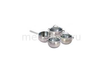 Артикул - RGT_93-D-11,Серия - Apple,Количество предметов - 7,Цвет - сталь,Материал - нержавеющая сталь 18/10,Тип поверхности - матовый,В комплекте - Ковш ,2л, 1 шт.,,Кастрюля ,2л, 1 шт.,,Кастрюля ,2.7л, 1 шт.,,Кастрюля ,3.6л, 1 шт.,,Крышка ,3 шт.,,,Тип нагрева - газовый, электрический None Страна производства: Китай Есть доставка. Доставка: 290.0RUR