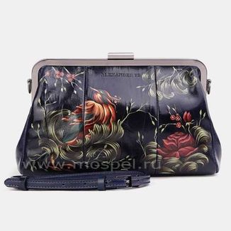 Женская сумочка на цыпочке с росписью "Дивная птица" из синей кожи:одно отделениевнутри один кармашеккожаный ремень через плечозамок фермуар Сумочка KB0019 Дивная птица сшита из кожи растительного дубления. Красивая фурнитура, отлично сочетающаяся с цветом кожи. Изображение создано художником при помощи специальной техники выжигания и росписи по коже. Каждый рисунок наносится на кожу вручную, что обеспечивает его индивидуальность. В нашем магазине можно купить как готовое изделие, так и сделать индивидуальный заказ. None Возможен самовывоз. Есть доставка.