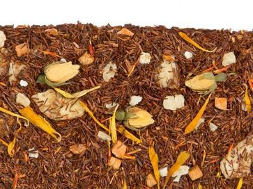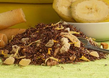 Свое романтическое название чай Ройбуш Банановый получил благодаря входящим в состав кусочкам банана, ананаса, карамели, бутонами желтой розы и лепестками календулы. Сам по себе напиток легкий приятного оттенка. Это ароматная композиция с легким травянистым, древесным и ореховым запахом. Кусочки банана и ананаса придают напитку интересный экзотический вкус. Послевкусие – очень приятное, остается мягкая сладость, едва заметная кислинка и желание выпить еще чашечку.