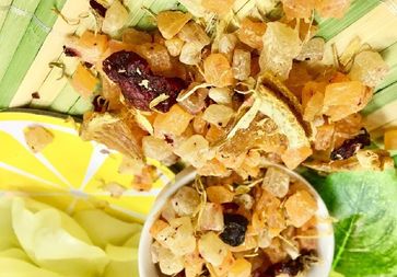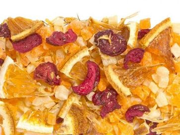 Фруктовая смесь из натуральных кусочков ананаса, апельсина, вишни, лепестков календулы. Композиция, покоряющая сердца влюбленых и романтичных!