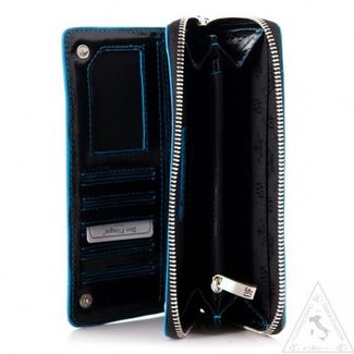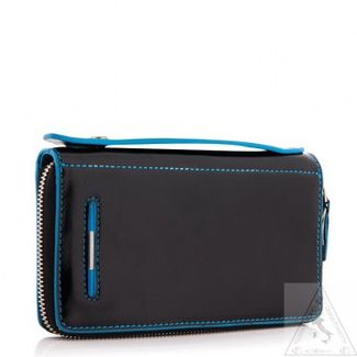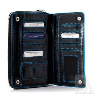 Современный мужской кожаный клатч Dor. Flinger 0184 026 черный: под молнией отделения - портмоне плюс откидное отделение на кнопках внутри кармашки для пластиковых карт удобная ручка Клатч сшит из мягкой глянцевой кожи черного цвета с отделкой голубой кожей. None Возможен самовывоз.