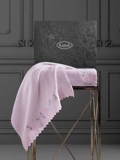 - Комплект махровых полотенец c гипюр "KARNA" AMORA 50х90-70х140 см (2 шт) цвет розовый по выгодной цене 2 138 р. руб.;