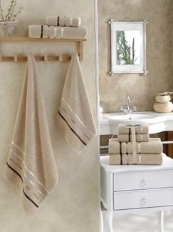 - Комплект махровых полотенец "KARNA" BALE бежевый 50х80 см (2 шт) и 70х140 см (2 шт) по выгодной цене 2 025 р. руб.;