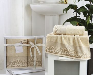 - Комплект махровых полотенец "KARNA" BEYZA бежевый 2 штуки: 50x90-1 шт, 70х140-1 шт в каталоге Каталог в России;