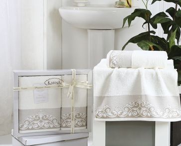 - Комплект махровых полотенец "KARNA" BEYZA кремовый 2 штуки: 50x90-1 шт, 70х140-1 шт по выгодной цене 1 688 р. руб.;
