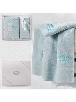 - Комплект махровых полотенец "KARNA" DERIN 50х90-70х140 см цвет ментол по выгодной цене 1 688 р. руб.;