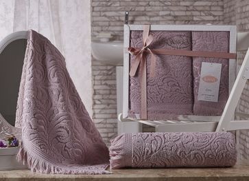 Закажите Комплект махровых полотенец "KARNA" ESRA грязно-розовый 50x90+70х140 см у компании Meleğim-текстиль в Россиина портале Alloy:
