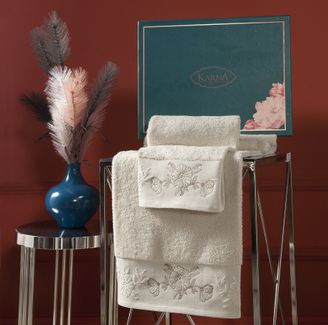 Закажите Комплект махровых полотенец "KARNA" MIRA 50х90-70х140 см цвет натуральный у компании Meleğim-текстиль в Россиина портале Alloy: