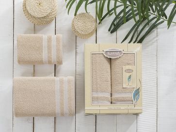 Закажите Комплект махровых полотенец "KARNA" PETEK цвет бежевый 2 штуки: 50x100+70х140 см у компании Meleğim-текстиль в Россиина портале Alloy: