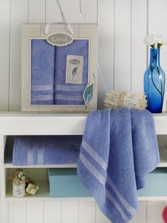 Закажите Комплект махровых полотенец "KARNA" PETEK цвет голубой 2 штуки: 50x100+70х140 см у компании Meleğim-текстиль в Россиина портале Alloy: