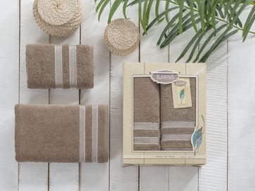 Закажите Комплект махровых полотенец "KARNA" PETEK цвет кофейный 2 штуки: 50x100+70х140 см у компании Meleğim-текстиль в Россиина портале Alloy: