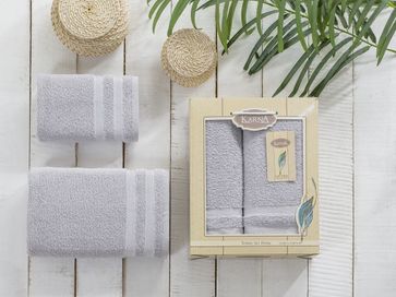 Закажите Комплект махровых полотенец "KARNA" PETEK цвет серый 2 штуки: 50x100+70х140 см у компании Meleğim-текстиль в Россиина портале Alloy: