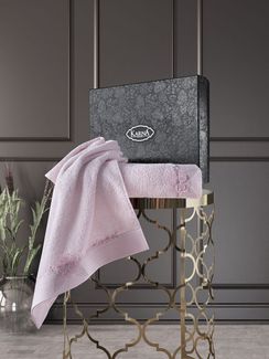 Закажите Комплект махровых полотенец "KARNA" с вышивкой SIENA 50х90-70х140 см (2 шт) цвет грязно-розовый у компании Meleğim-текстиль в Россиина портале Alloy: