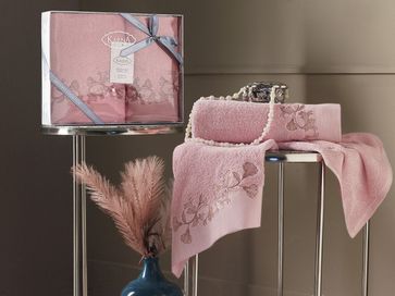Закажите Комплект махровых полотенец "KARNA" VIERA 50х90-70х140 см цвет коралловый у компании Meleğim-текстиль в Россиина портале Alloy: