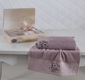 Закажите Комплект махровых полотенец "KARNA" VIOLA светло-сиреневый 50x90-70х140 см у компании Meleğim-текстиль в Россиина портале Alloy: