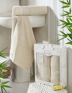 Закажите Комплект полотенец бамбук "KARNA" PANDORA бежевый 2 штуки: 50x90+70х140 см у компании Meleğim-текстиль в Россиина портале Alloy: