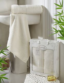 Закажите Комплект полотенец бамбук "KARNA" PANDORA кремовый 2 штуки: 50x90+70х140 см у компании Meleğim-текстиль в Россиина портале Alloy: